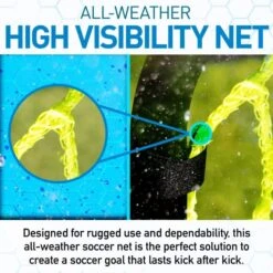 - The durable vibrant optic yellow 4″ x 4″ square net uses self-stick strips that attach with ease, maintain the goal net in place and will keep soccer balls from flying across your yard while you develop your scoring skills.