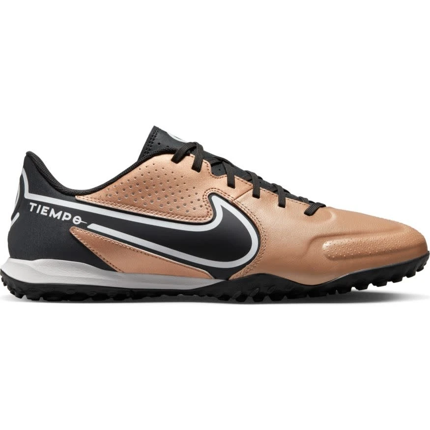 1 of the lightest Tiempos to date, the Nike Tiempo Legend 9 Academy TF lets you go on the offensive with a low-profile design that’s reinvented for attackers. The upper features raised areas throughout the strike zone for precise dribbling, passing and shooting, while a rubber sole helps supercharge traction on turf.