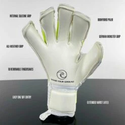 The HELIX Defiant. Designed to protect you on the pitch, this Helix boasts 4mm of German Supreme Latex, Soft Grip palm technology and a comfortable BioHybrid Cut, it offers superior control and precision. The Blue Camo Backhand, Xtend Wrist and Removable Finger Protection add durability and comfort, while the Internal Silicone Grip keeps your glove secure during play.